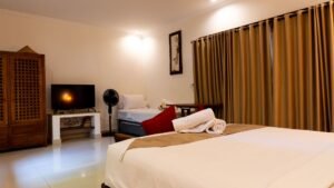 Air conditioning, a lounge area, a flat-screen TV with cable channels, a kitchen, a dining area, a safety deposit box, and a private bathroom with a walk-in shower, a hair dryer, and complimentary toiletries are all features of the villa complex accommodations. There’s also a fridge, microwave, and toaster available, along with a coffee maker and kettle. The villa complex provides towels and bed linens in each unit.